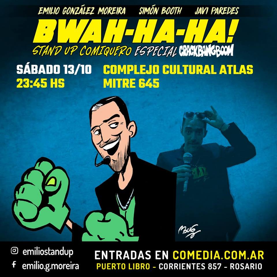 comic3 octubre, 2018 • 960 × 960 • Sábado 13 – #Standup comiquero – Bwah-ha-ha especial #CrackBangBoom